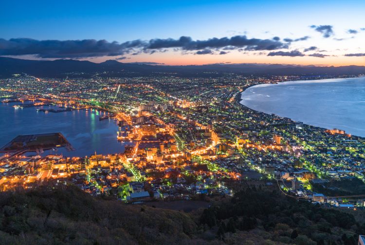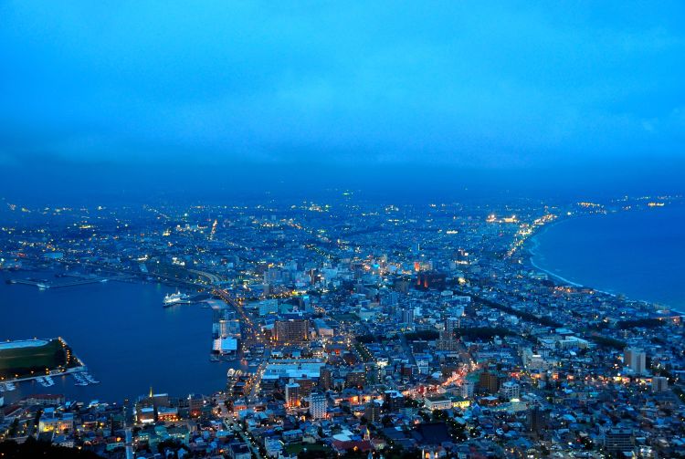 從函館山可以一覽函館市及周邊海灣、海洋和群山的壯麗全景。白天時,可以欣賞到如星形的西式城郭五稜郭、元町的外國人居留地及市區的美麗景觀。夜晚時,函館市則如同寶石箱般閃閃發光。